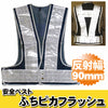 安全ベスト ふちピカFlash(紺/白)は、90mmの反射材幅で視認性バツグン!ベストのふちの部分も光るのでよく目立ちます。乱反射する反射材を使用しているため、より視認性がアップしており、さらにサイドはマジックテープになっているので体型に合わせて調節が可能です。