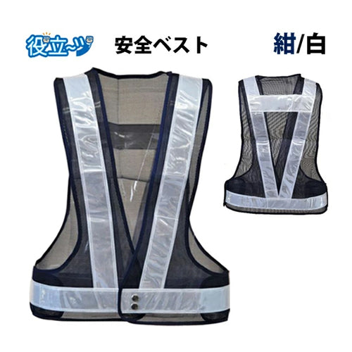 安全ベスト フリーサイズ 反射ベスト 夜行ベスト 安全チョッキ 「ミズケイ 安全ベスト〈紺/白〉 反射材幅5cm 5917502」