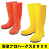 丸五の「安全プロハークス#920」は、視認性の強い黄色、オレンジの蛍光色を使用したゴム長靴です。爪先への衝撃(圧迫)から爪先部を保護する鋼製先芯採用し、安全靴としても活躍。耐油性に優れた特殊配合PVCを使用し、汚れがつきにくいシンプル意匠。長ぐつの中にズボンを入れてもズボンがズレ上がりにくいズボン止めを採用。抗菌加工で雑菌の繁殖を防止し、吸汗素材で足ムレを改善しましたのでより長くご利用頂けます。