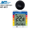 黒球付小型熱中症計「MT-876」の後継機種「MT-877」は、JIS B 7922 クラス 2 に準拠しており日本生気象学会・日本体育協会・厚生労働省のそれ ぞれの予防指針に対応した WBGT 表示とアラームでお知らせができます。 また、衣類の組み合わせによる WBGT 値の補正もできますので、より正確な測定が可能となっております。具 体的な使用場所は建設工事現場や製造工場内、倉庫内、教育機関などで、作業員の熱中症予防対策や労働環境の 安全管理にご使用いただけます。